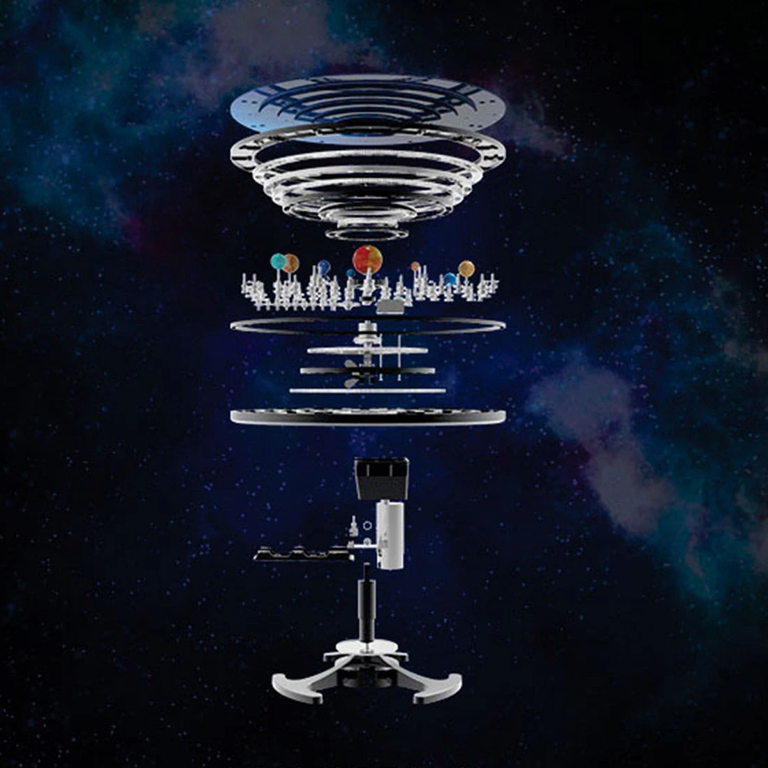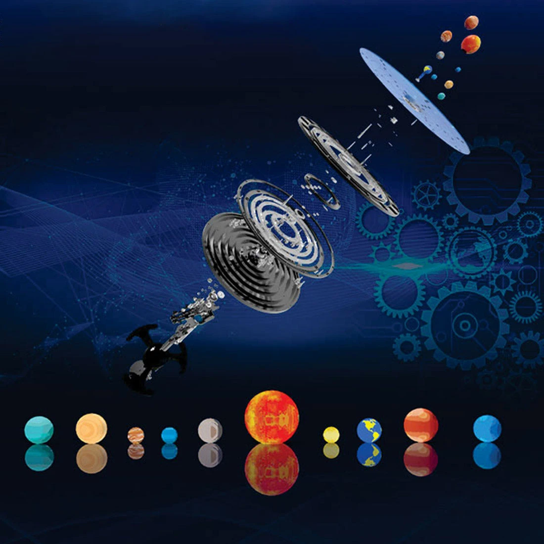 Metal model kit of 8 planetary apparatuses of the solar system. CNC process precision casting, aluminum alloy oxidation color, collectible handicraft-level real machine workmanship, start your adventure in the world of mechanical engineering with this model ornament