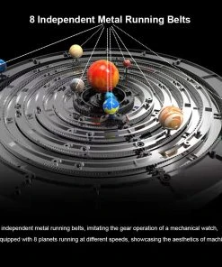 Solar system can be driven by a motor, 8 independent metal running belts, imitating the gear operation of a mechanical watch, equipped with 8 planets to rotate by themselves according to a certain autobiography and revolution rate, which is more realistic and interesting, you can observe the whole process of the solar system