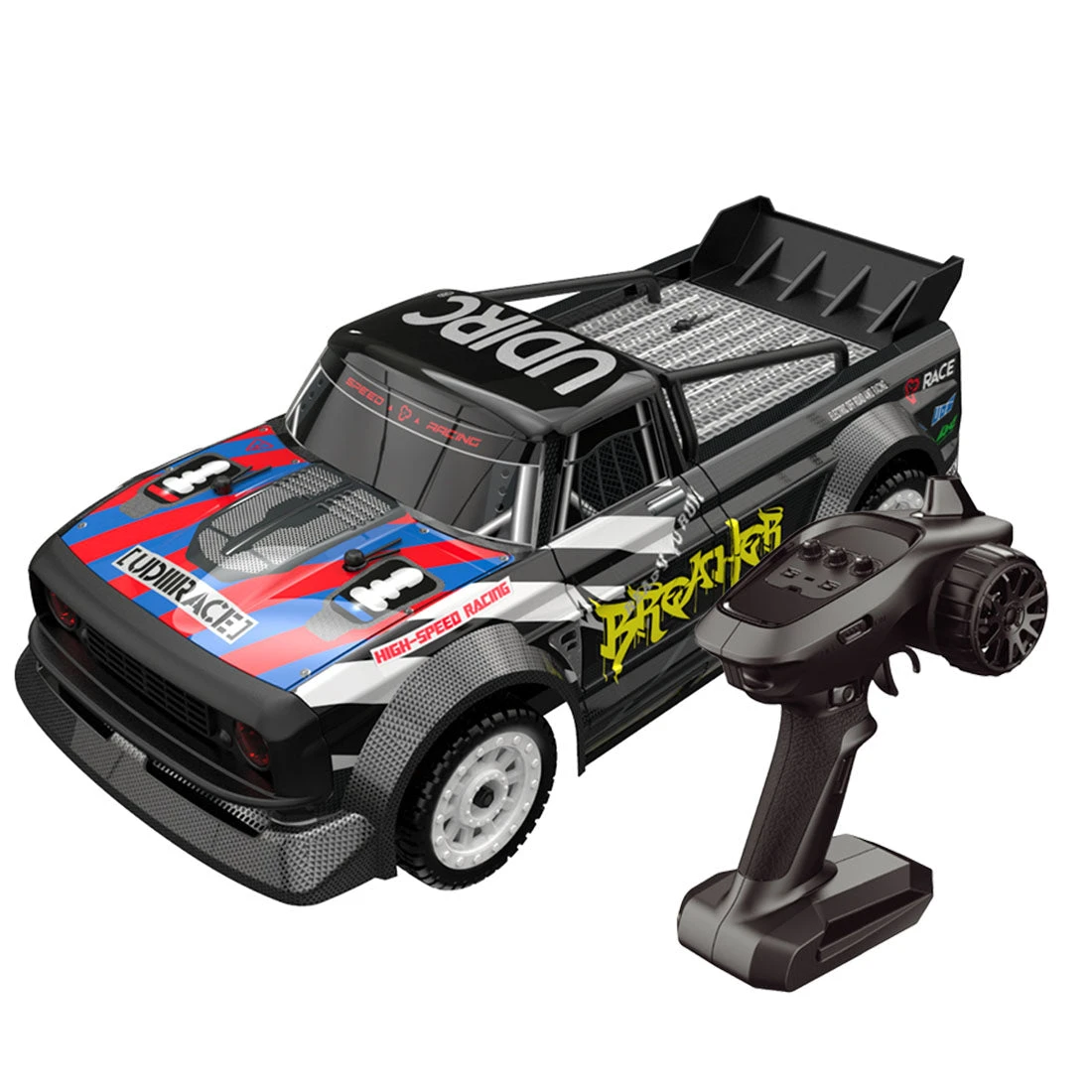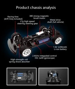 Cool appearance, using high-quality materials, PVC car shell has high toughness, anti-falling and anti-collision, and will not crack when squeezed and bent. The high-efficiency metal transmission shaft of the whole car and the high-speed ball bearing of the whole car improve the efficiency of mechanical transmission. High-strength nylon front and rear planetary gear differentials, all-metal transmission shaft (front CVD, rear dog bone), strong and wear-resistant effect, more stable curve driving. The front and rear independent suspension damping system has a good damping effect, which better protects the remote control car.
