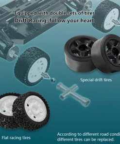 Equipped with 2.4Ghz remote control, 17g high-speed steering servo, 2435 KV3900 brushless motor, brushless ESC, 7.4V 1200mah battery, you can play directly when you get it. This car is equipped with racing wheels as standard, and a set of drifting wheels is also included for replacement, and the racing/drifting modes can be switched at will.