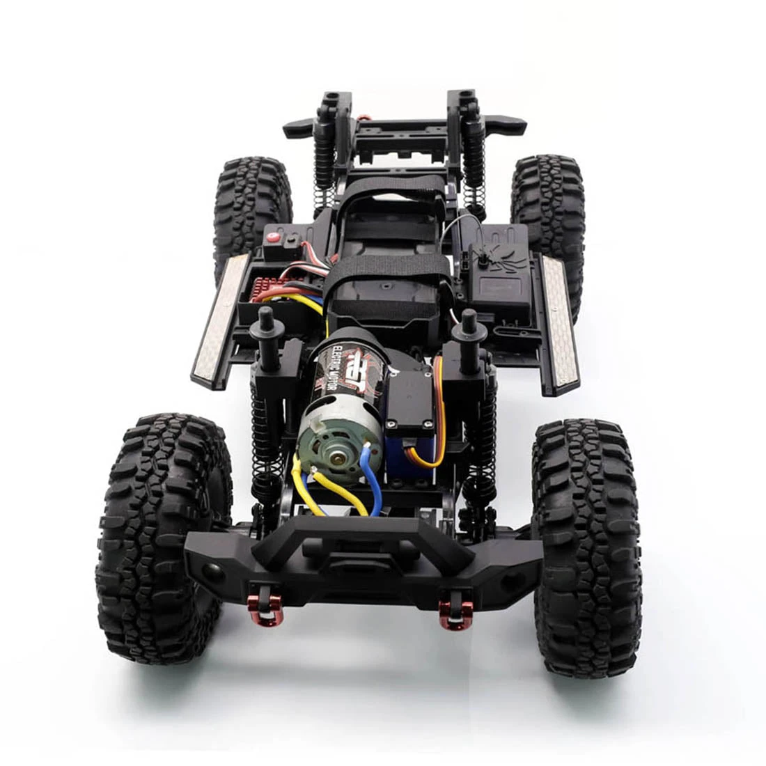 .Configuration: Comes with LED headlights, front pole lights and rear pole lights. Can be energized through the receiver. With 60A brushed ESC, 550 17T large torque brushed motor and 15KG high torque waterproof servo, 7.2V 2000MAH battery, to make climbing easier.