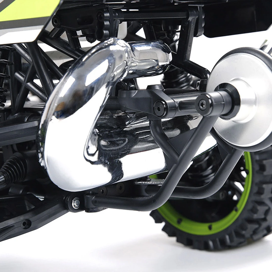 .Product Configuration: Dominator exhaust pipe; metal differential; all-terrain tires (reticulated wheels); 6mm shock absorption; 8000 rpm clutch; second-generation reinforced front and rear suspension; new proportioning pot; plastic rack tail wheel kit ; 9MM replaceable axle pin half shaft; CNC metal rear shock absorber crossbar; new plastic roof trim; new plastic front anti-collision; symmetrical steering; new sealing nut.