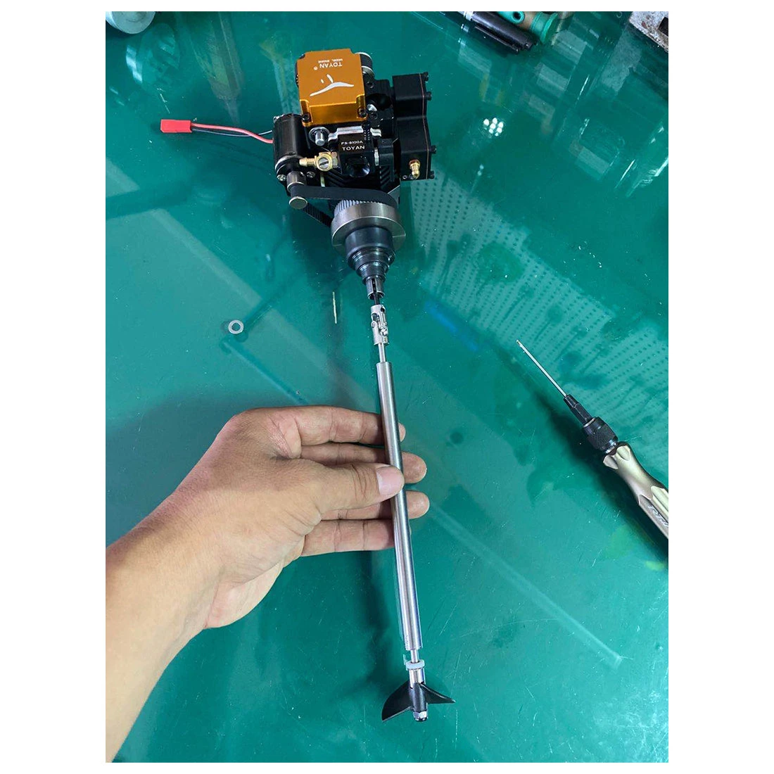 .The ship shaft propeller is fitted with TOYAN engine and clutch assembly