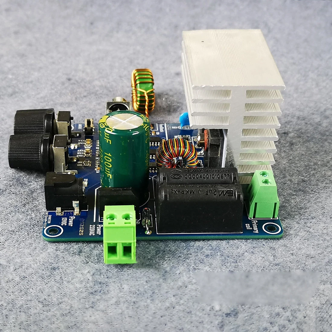 .This drive board can produce an arc of about 10cm. The drive power supply adopts a dc12v power adapter, a standard dc2.1 power interface, and the pulse width and frequency can be independent