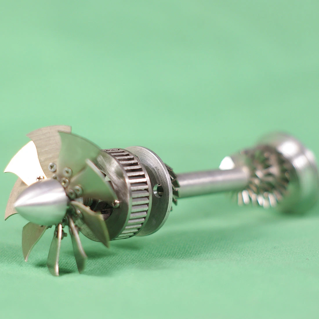 Because the steam pressure of the small boiler is much lower than that of the real machine, the impeller structure used in the model is slightly changed. Theoretically, the thermal efficiency of the steam turbine is 35% higher than that of the piston reciprocating steam engine. But because the pressure of small boilers is very low, and the steam turbine is not forced to do work. Therefore, in the low-pressure and low-speed model world, pistons are better than turbines.