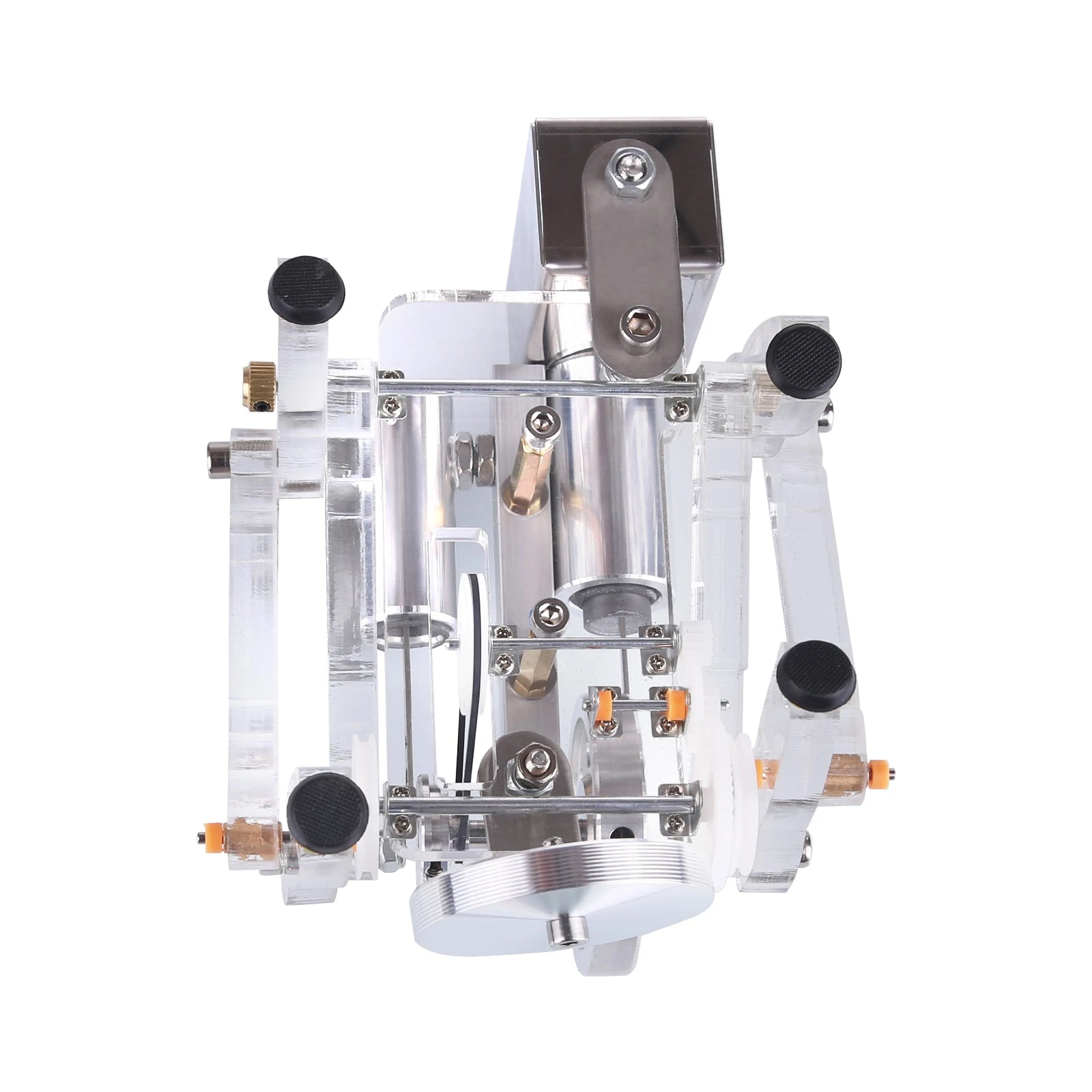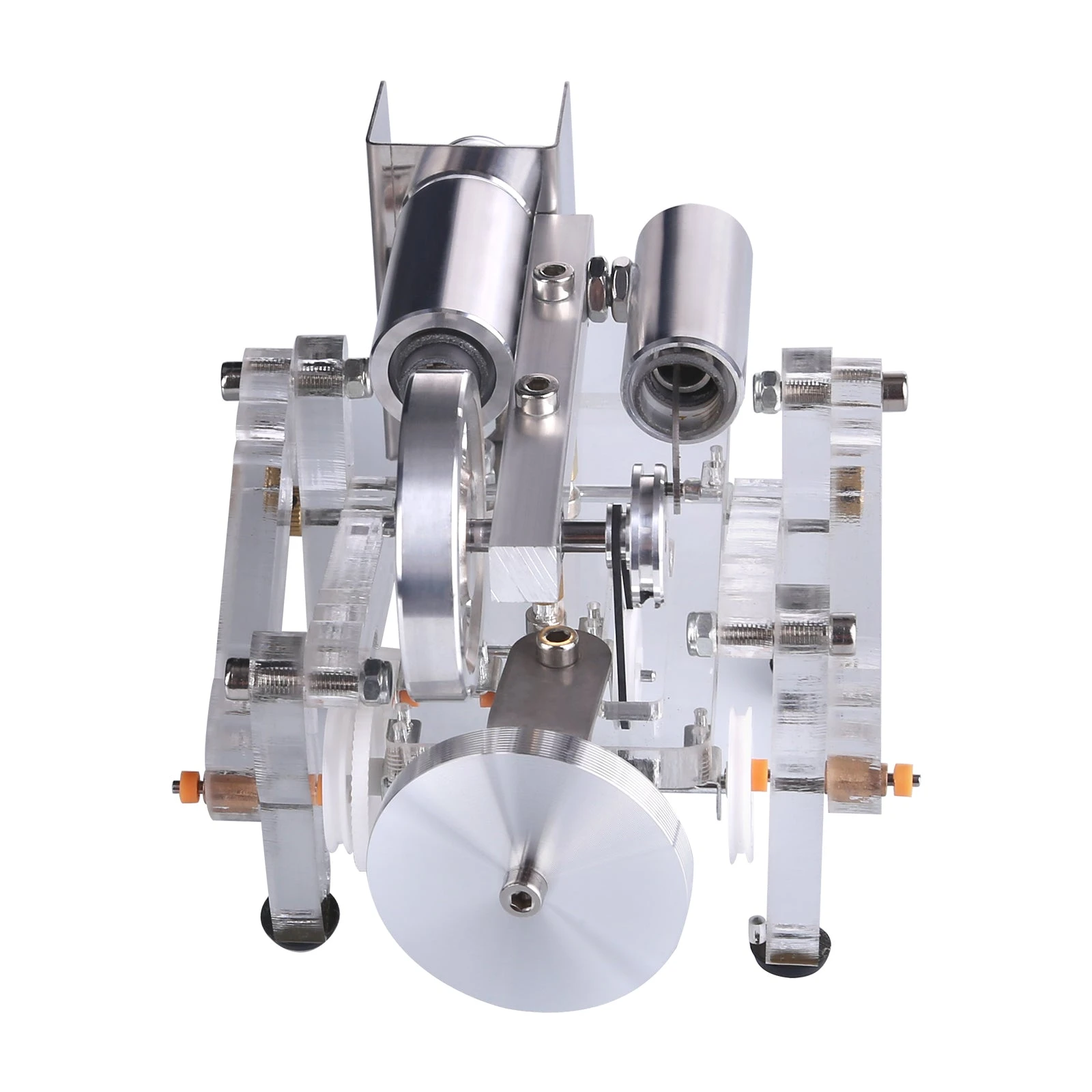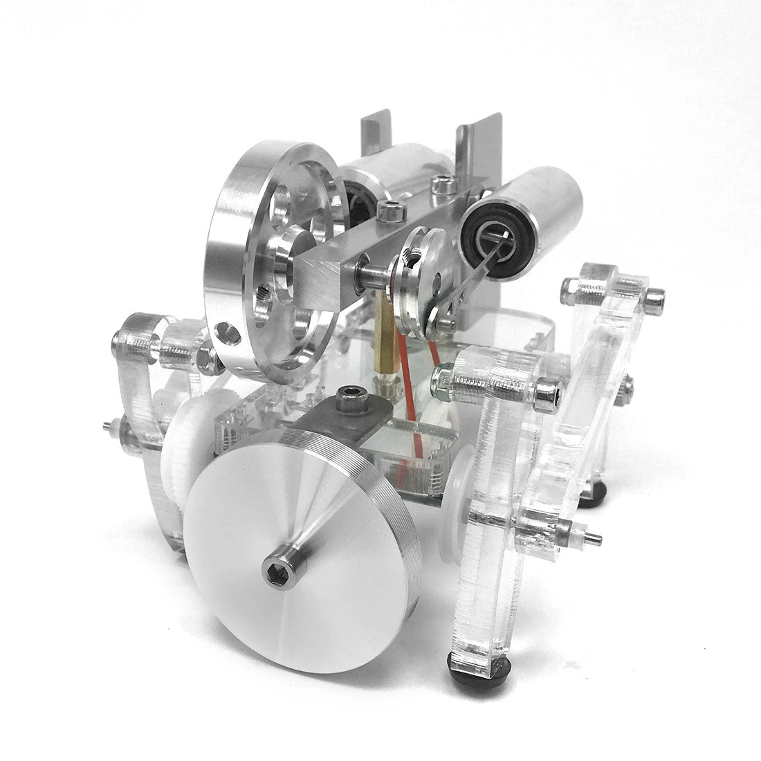 The main body of the Stirling engine is made of aluminum alloy, and the feet are made of acrylic material. The whole is more exquisite and beautiful. The model is equipped with an alcohol lamp mounting bracket, which is safer and more reliable to use. The model runs smoothly and is durable.