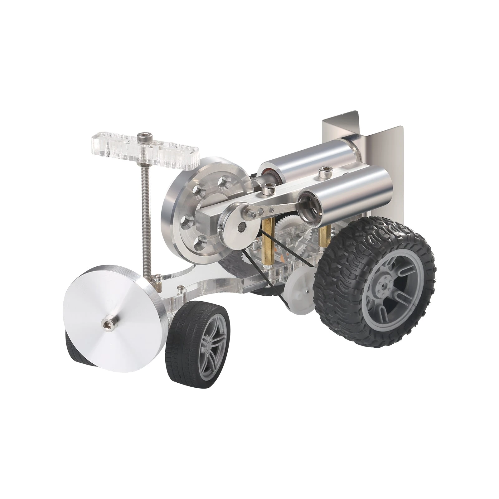 Stirling Engine DIY Model Car Vehicle Science Experiment Teaching Aids Gift – Manual Steering Version