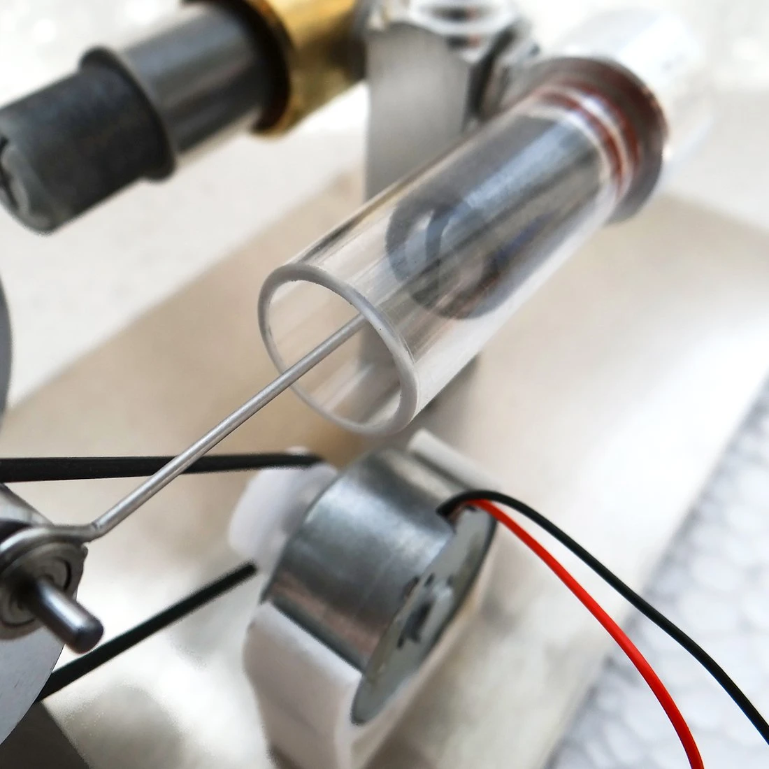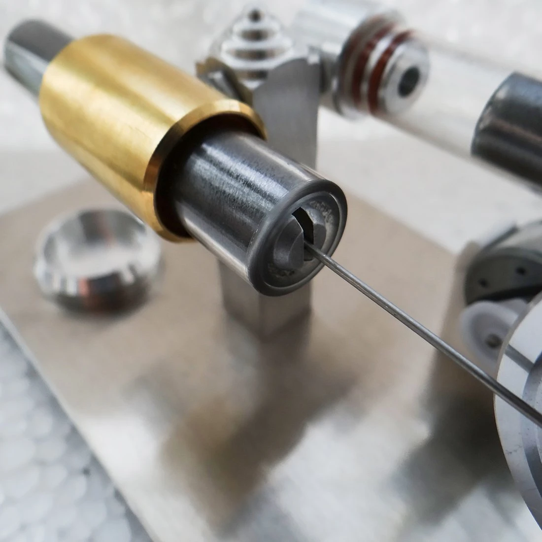 2, The bottom plate is made of brushed aluminum alloy, the bracket is made of CNC finishing, the surface is sandblasted and solid, the flywheel is made of aluminum alloy, and the special 5-hole flywheel is very special. The connecting rod is made of stainless steel and the connecting sleeve of power cylinder is made of aluminum alloy. The heating cylinder is our custom-made quartz tube (this is the difference of quartz edition). It is not afraid of the high temperature and the quench.