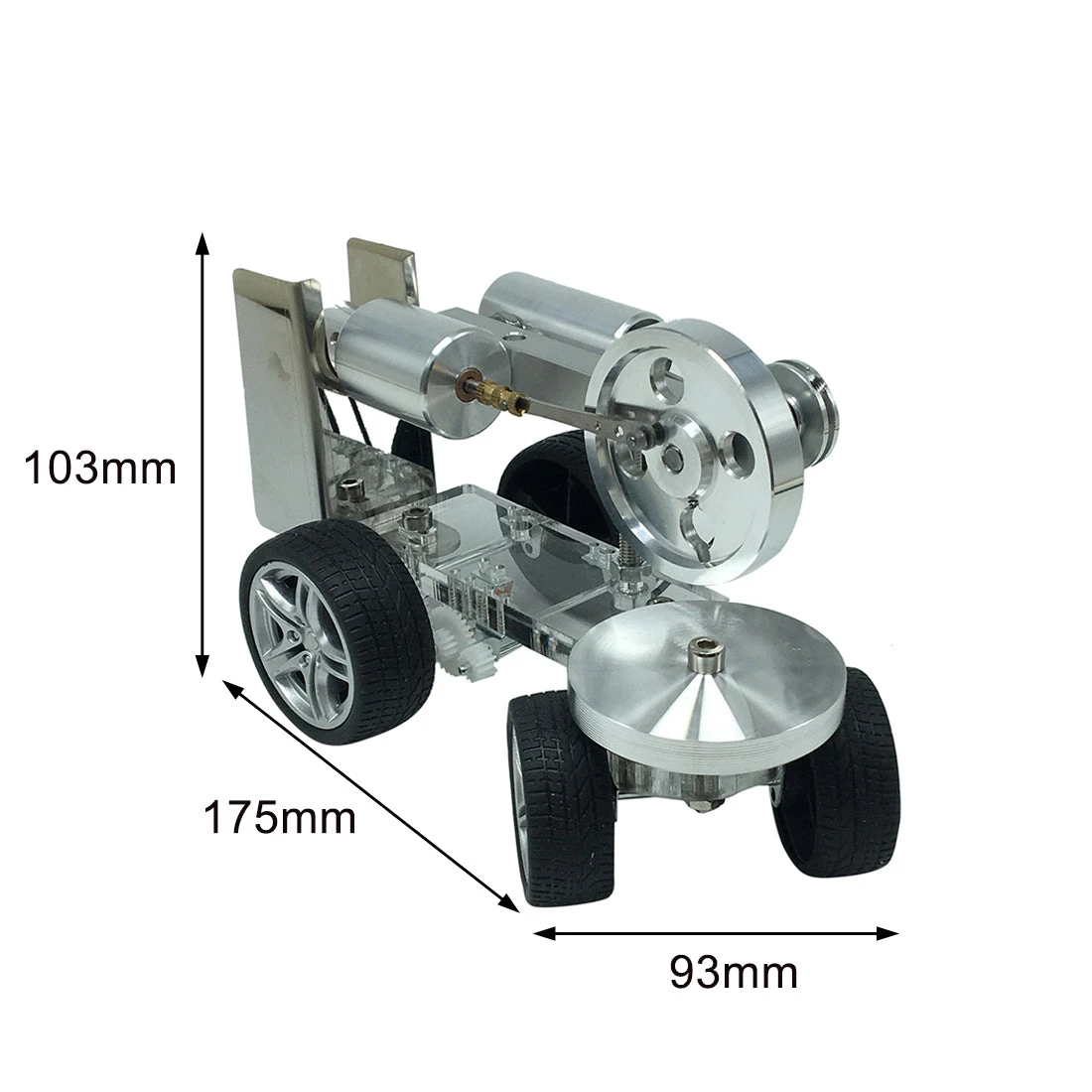 The main body of the Stirling engine is made of aluminum alloy, and the body panel of the car is made of acrylic material, which is more refined and beautiful. The car is equipped with an alcohol lamp mounting bracket, which is safer and more reliable to use. The model runs smoothly and is durable.