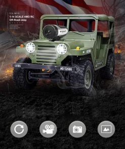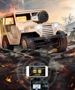 .Exquisite Appearance: 1:14 full-scale off-road military command vehicle, adopting simulation design style, equipped with detachable tool hammer, tool axe, fuel tank, spare tire and other decorative objects. The vehicle is equipped with 2 sets of LED high-brightness headlights, so it can drive smoothly at night. The vehicle supports an additional real-time WIFI camera, with more ways to play and double the fun.
