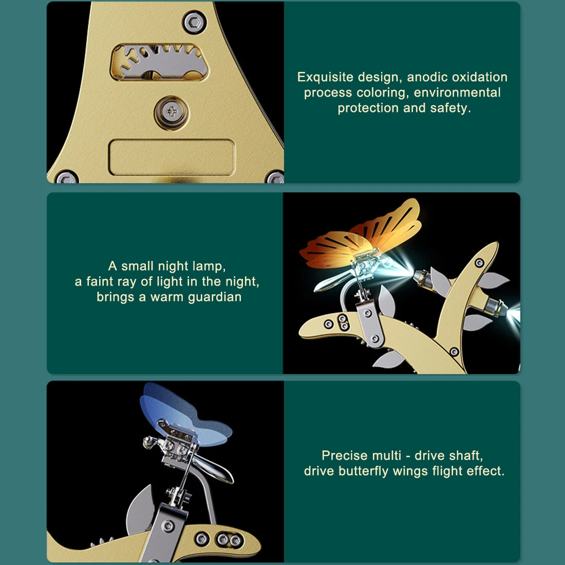 1. exquisite desktop ornament: 3D metal butterfly model kit, CNC refined, collectible craft grade real machine work, mechanical engineering and nature insect wing power fusion, start your mechanical engineering world adventure from this model ornament.