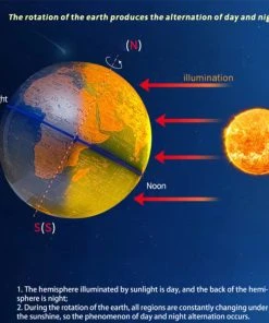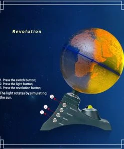 2. The following functions are able to freely switch on and off: the simulation of the earth’s revolution, rotation, the alternation of light and dark as well as direct solar radiation to interpret the earth’s four seasons changes and day and night alternation. All these allow you to intuitively feel the earth’s operation and easily understand our home.