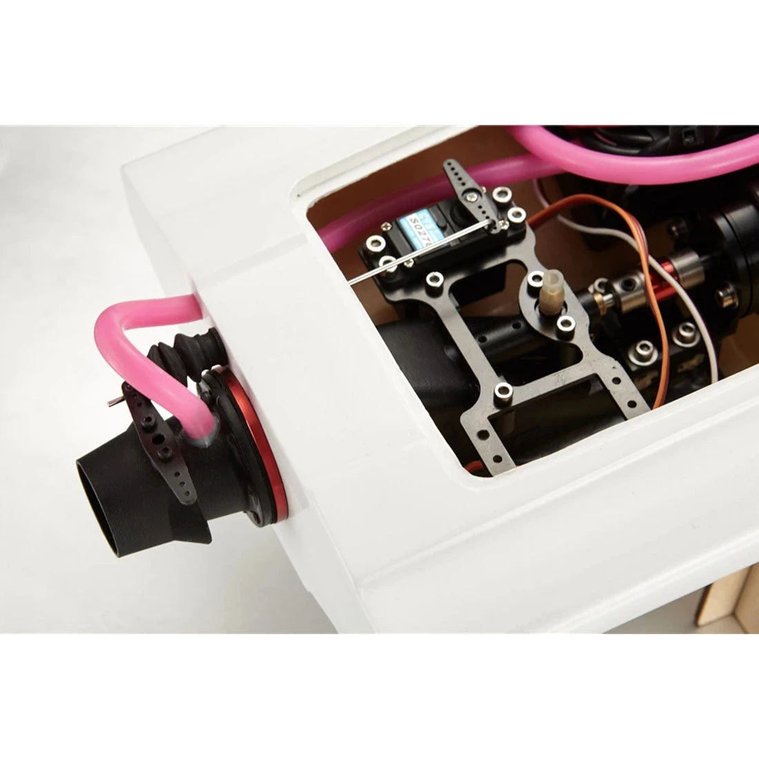 .The main body of the injector is made of high-quality nylon material, which is light and has sufficient mechanical strength, wear resistance and corrosion resistance. The bushing copper tube is durable and the carbon fiber steering gear bracket is light and strong. The other parts are all equipped with high performance. So that the entire powertrain can maximize its power