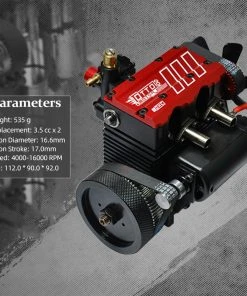 2. Strong Performance: Asynchronous crankshaft structure is adopted, the operation is smoother, the acceleration response is sensitive, and the maximum speed is 16000 RPM. Displacement: 7.0cc (3.5cc*2) Output Power: 0.82ps. Short rocker arm design makes the valve switch more accurate. Longer crankshaft design, can be matched with front/reverse gearbox, suitable for RC model loading.