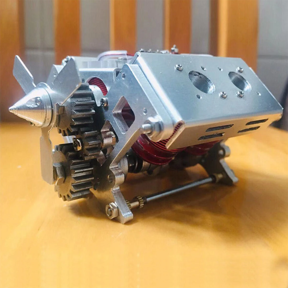 The V4 electromagnetic engine model has a domineering shape and a beautiful appearance. The main body is made of metal, and the overall mechanical sense is full; the production is elaborate, ingeniously created, the parts are perfectly combined, and the precise production technology is demonstrated