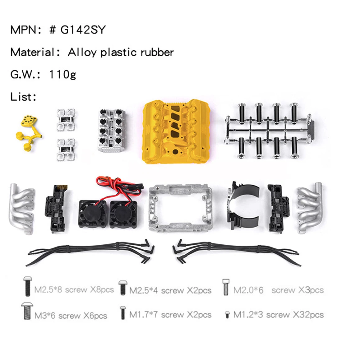 .Modified the appearance of the V8 engine with a stack-type fuel injection system for incredible details, the cover without temperature sensor is built in dual fans with a speed of 13000RPM for motor heat dissipation and standard JST plug to operate as soon as plugged it.