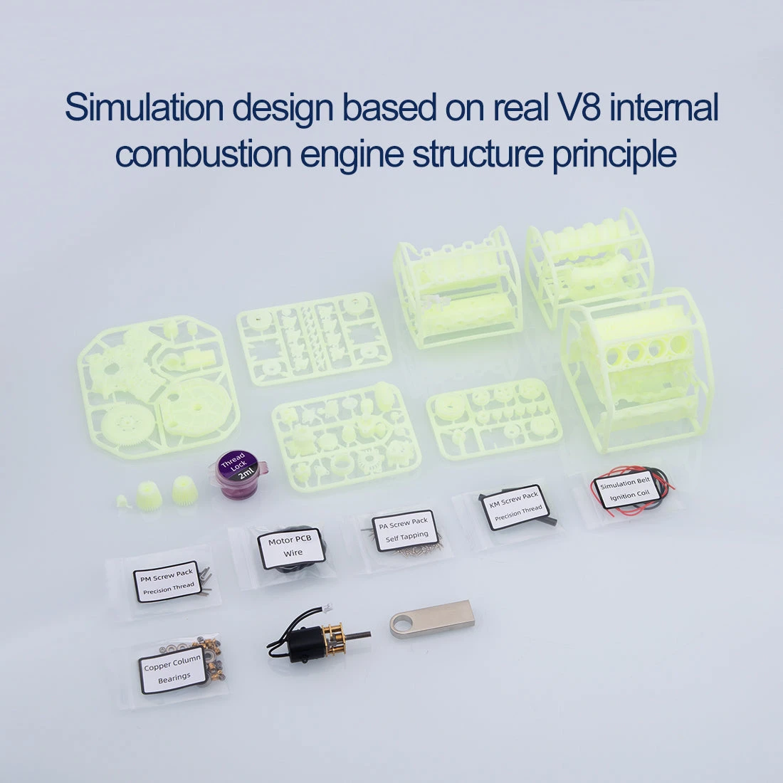 Product based on pre-color, users need to install. The V8 engine model can simulate the operation with electricity. At the same time, considering the stability and reliability of operation, we made the full bearing structure of the driving part in the mini space.