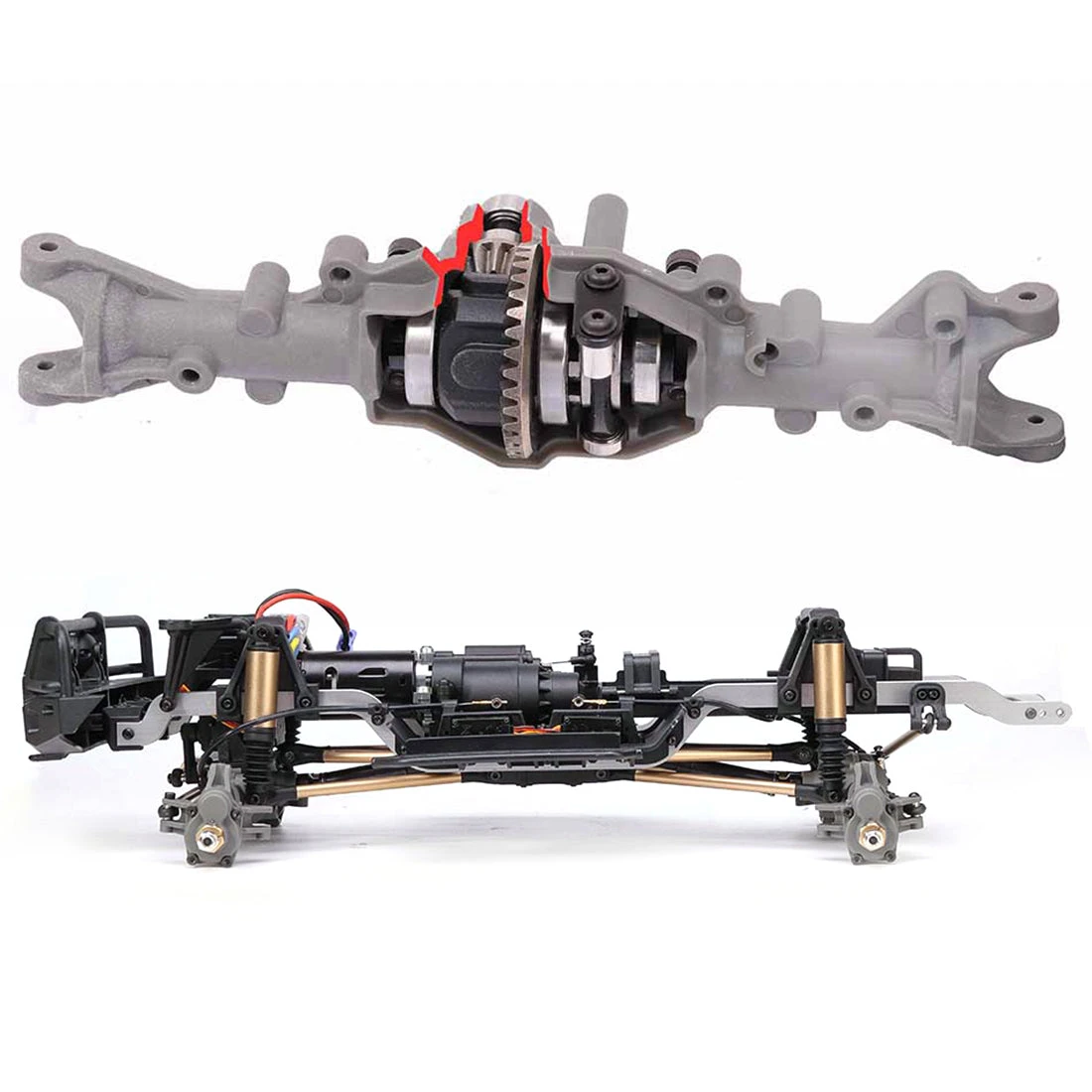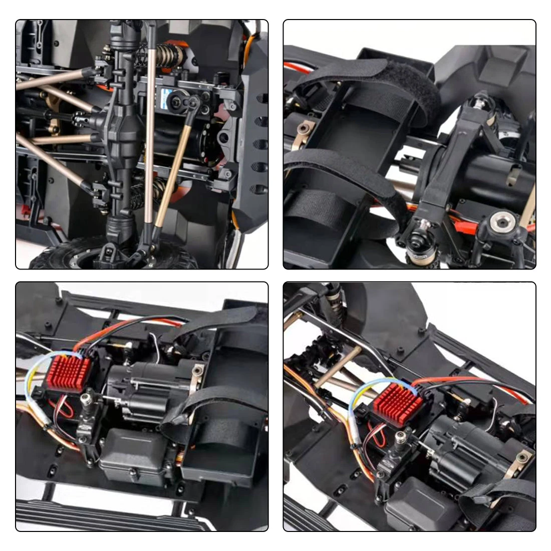 The gearbox interior is equipped with machined steel gears for higher strength and smoothness. The beam of the ten-byte structured car is made of aluminum alloy in CNC. The shock absorber utilizes large capacity external spring shock absorber, which can raise or lower the body height by adjusting the ring.