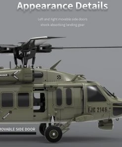 .Authentic&Classic: Maximizing the appearance of American UH60-Black Hawk Helicopter, the 1/47 helicopter model features highly simulated appearance and details including cool lights, left&right movable side doors and undercarriage with shock absorber.